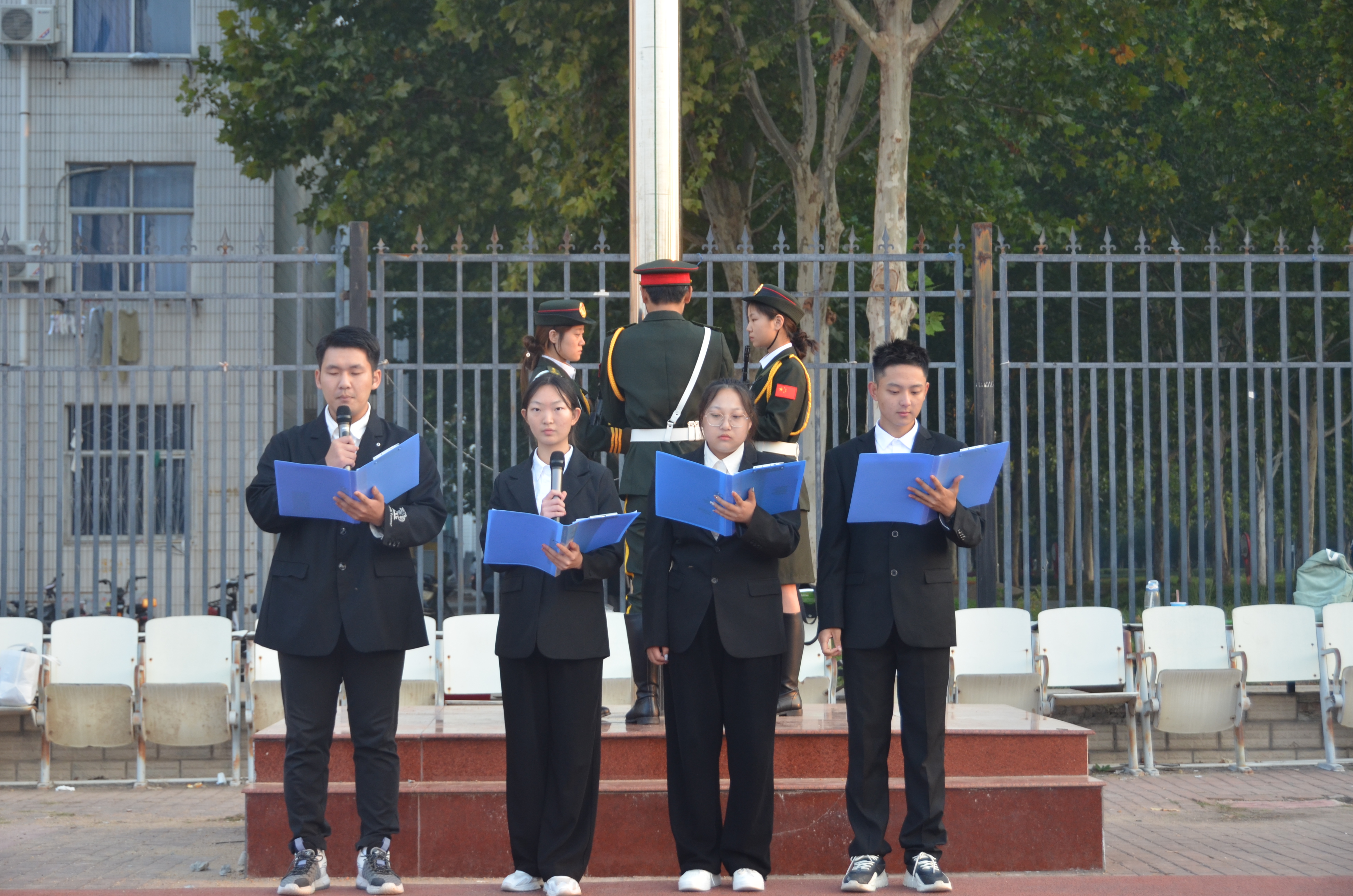 随后,学院陈昱兴、赵佳茜、赵鹏飞、王珺琦等四位同学进行国旗下的朗诵《祖国颂歌》。四位同学以饱满的热情,激昂的语调朗诵了一首爱国主义诗歌,诗歌中充满了对祖国的热爱和对未来的信心。在场师生深受感染,共同感受到爱国主义的深厚情感和米兰学子为实现中华民族伟大复兴而奋斗的坚强决心。