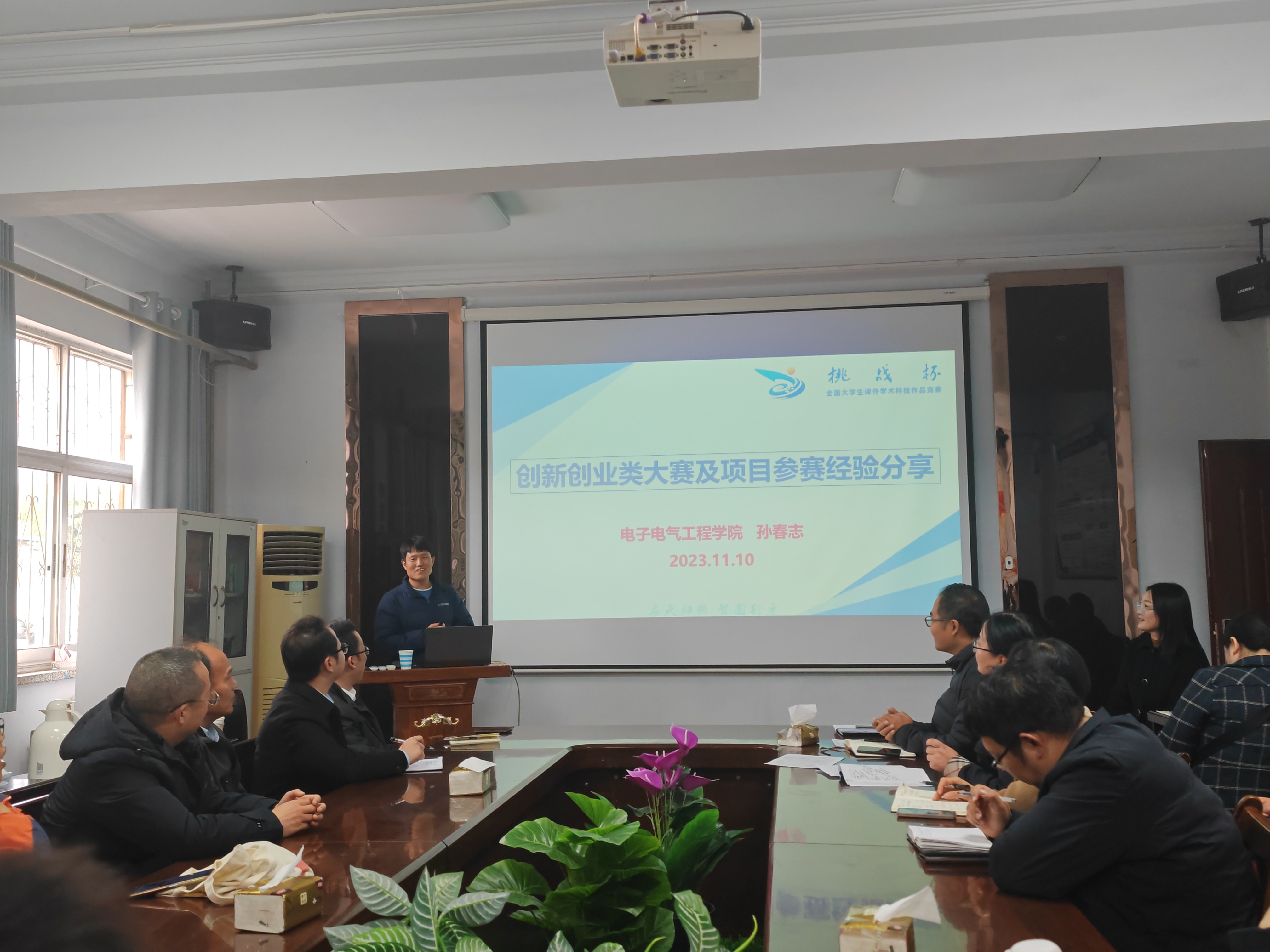 为培养学生创新创业意识,提升大学生创新创业能力,培养适应创新型国家建设需要的高水平创新创业人才。11月11日,米兰体育官方网站在7号楼学院会议室举行创新创业类竞赛经验交流研讨会,本次研讨会特别邀请了电子电气工程学院孙春志,硕士生导师,副教授,河南硕拓智能科技有限公司技术顾问,第七届、第八届中国国际互联网+大学生创新创业大赛国赛铜奖指导教师进行经验分享,学院全体领导班子成员及全体教职工参加研讨会,研讨会由学院党委副书记张颜梅主持。