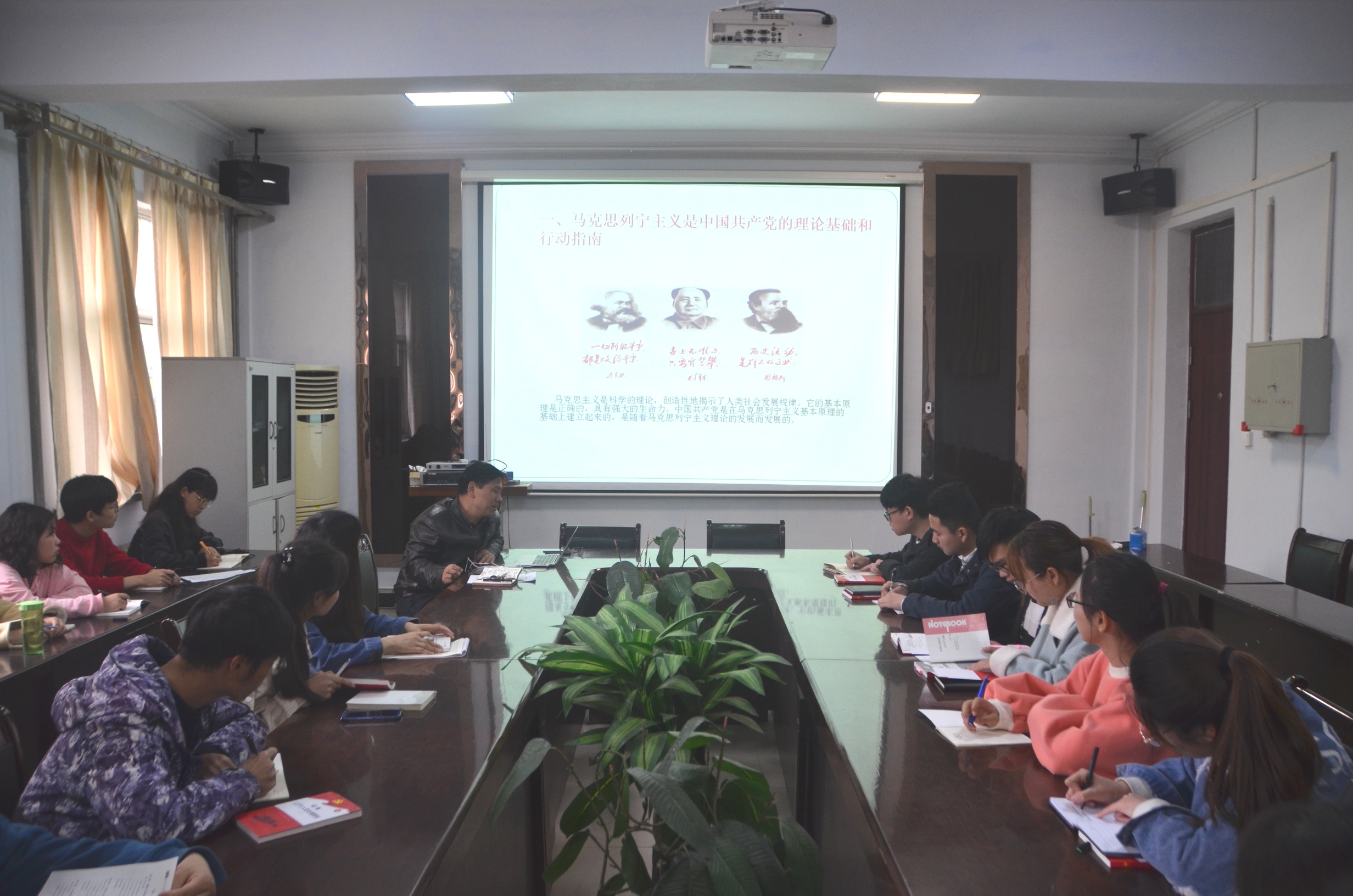 为了贯彻党的行动指南,践行党的理论方针,4月12日,米兰体育官方网站于睢阳校区7号楼会议室进行入党积极分子中级培训系列主题党课第三讲“一脉相承、与时俱进——中国共产党的指导思想”。学院全体中级入党积极分子参加,院长瞿鹏主讲。