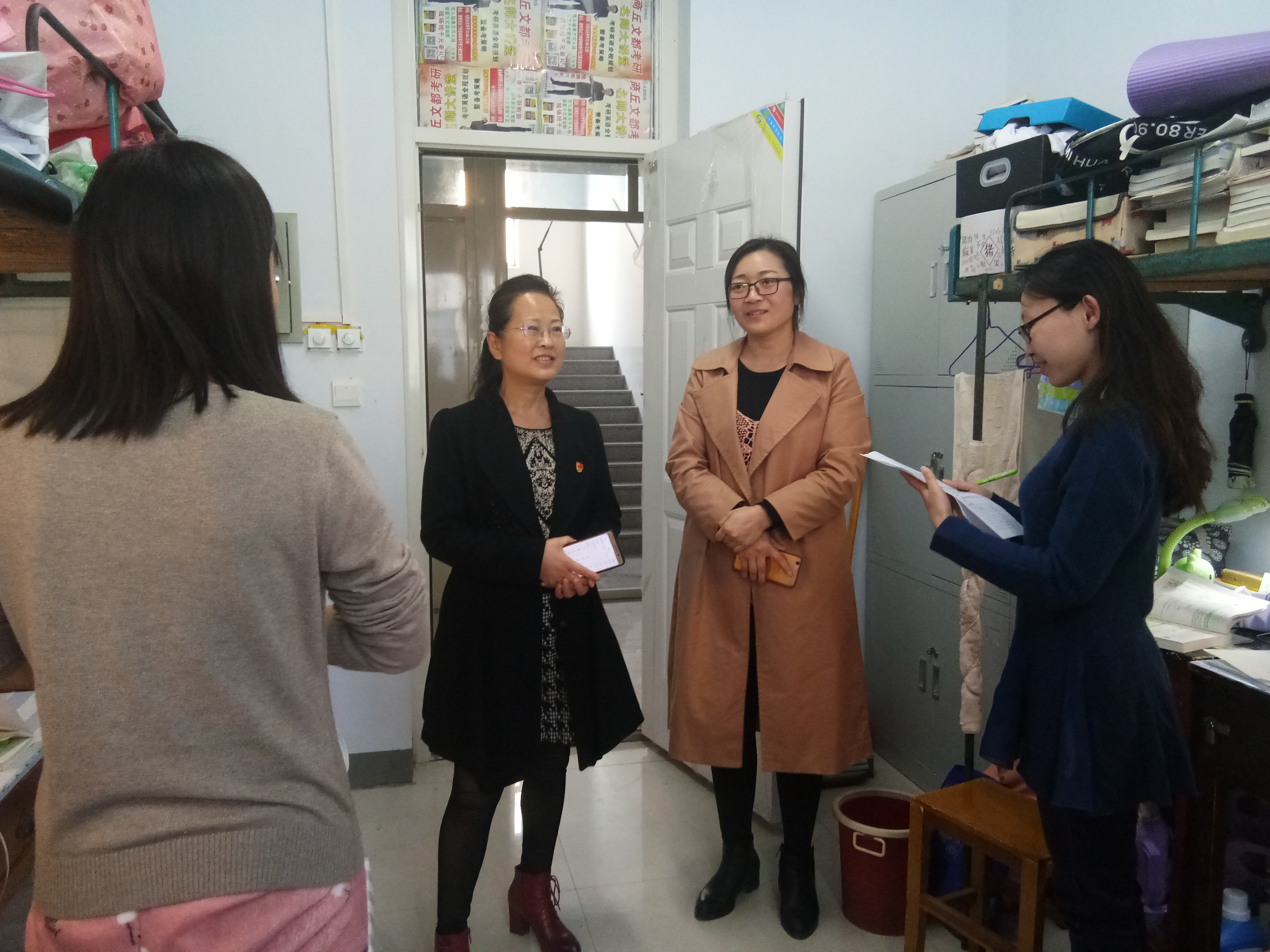 为了解学生学习、生活情况,并对宿舍安全、文明、卫生面貌进行检查。3月19日下午,学院党总支副书记刘瑛带领各年级辅导员老师深入学生宿舍进行检查走访。