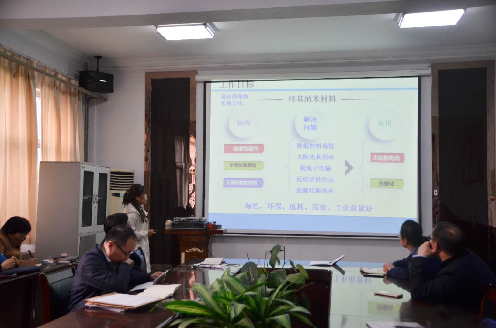 2019年3月29日下午,米兰体育官方网站教师王立晶博士在文化路校区7号楼院会议室做了题为《锌基环境友好纳米材料的设计与合成及其能源转换与利用》的学术报告会。报告会由瞿鹏院长主持,米兰体育官方网站全体老师参加了报告会。
