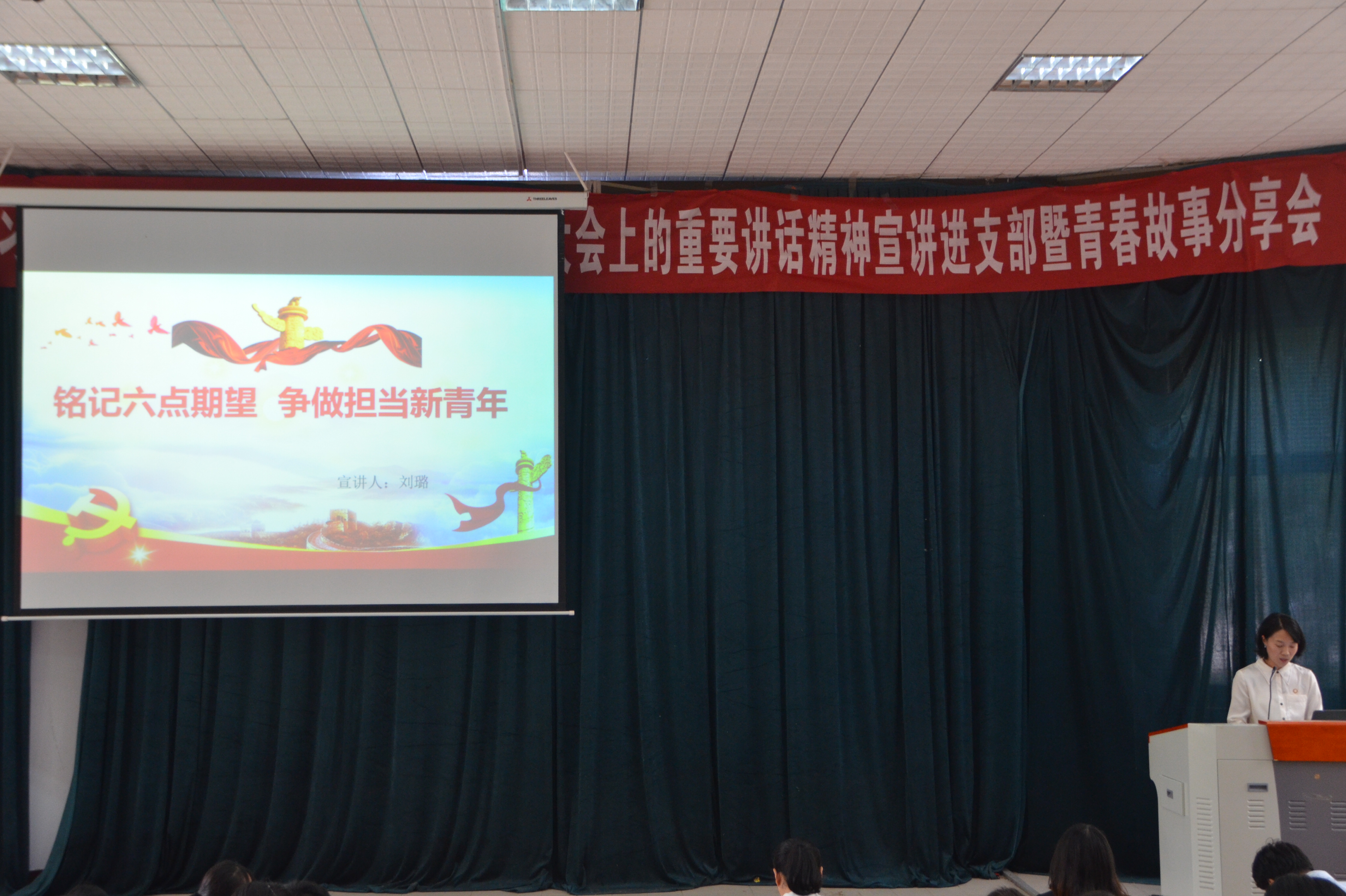 神宣讲进支部暨青春故事分享会。校团委副书记蒯秀丽、校团委组织部部长刘璐、艺术设计学院的团总支书记王頔、生物与食品学院的团总支书记陈东鹏、数学与统计学院团总支书记姜素华、米兰体育官方网站团总支书记李龙梅、米兰体育官方网站和生物与食品学院部分学生参加会议。校团委副书记蒯秀丽主持大会。
