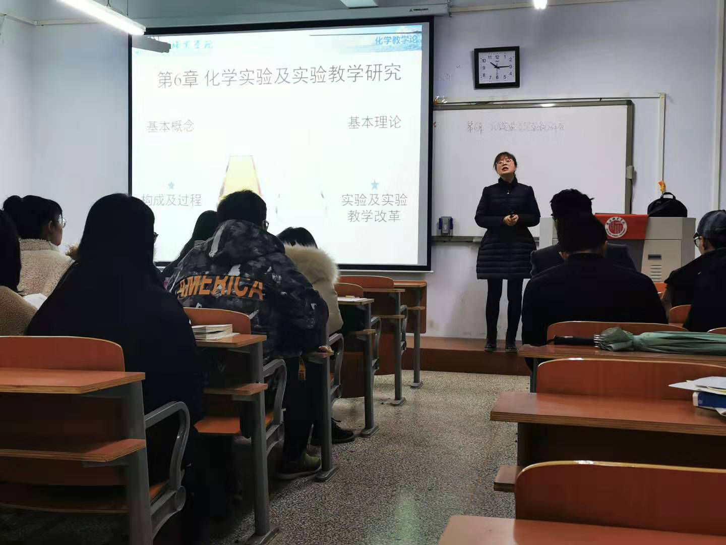 为了进一步加强米兰青年教师的培训与交流,促进米兰青年教师尽快适应学校转型发展和专业建设要求,提高教师的专业素质和教学能力,夯实教师驾驭课堂教学的基本功,本学期米兰开展了青年教师公开课活动。2019年12月16日上午,米兰青年教师张南在导师曹广秀教授指导下在睢阳校区1号教学楼407教室进行《化学教学论》公开课。化学系主任韦秀华副教授,青年教师导师曹广秀教授、刘新民老师、王晶晶老师等观摩了本次公开课。
