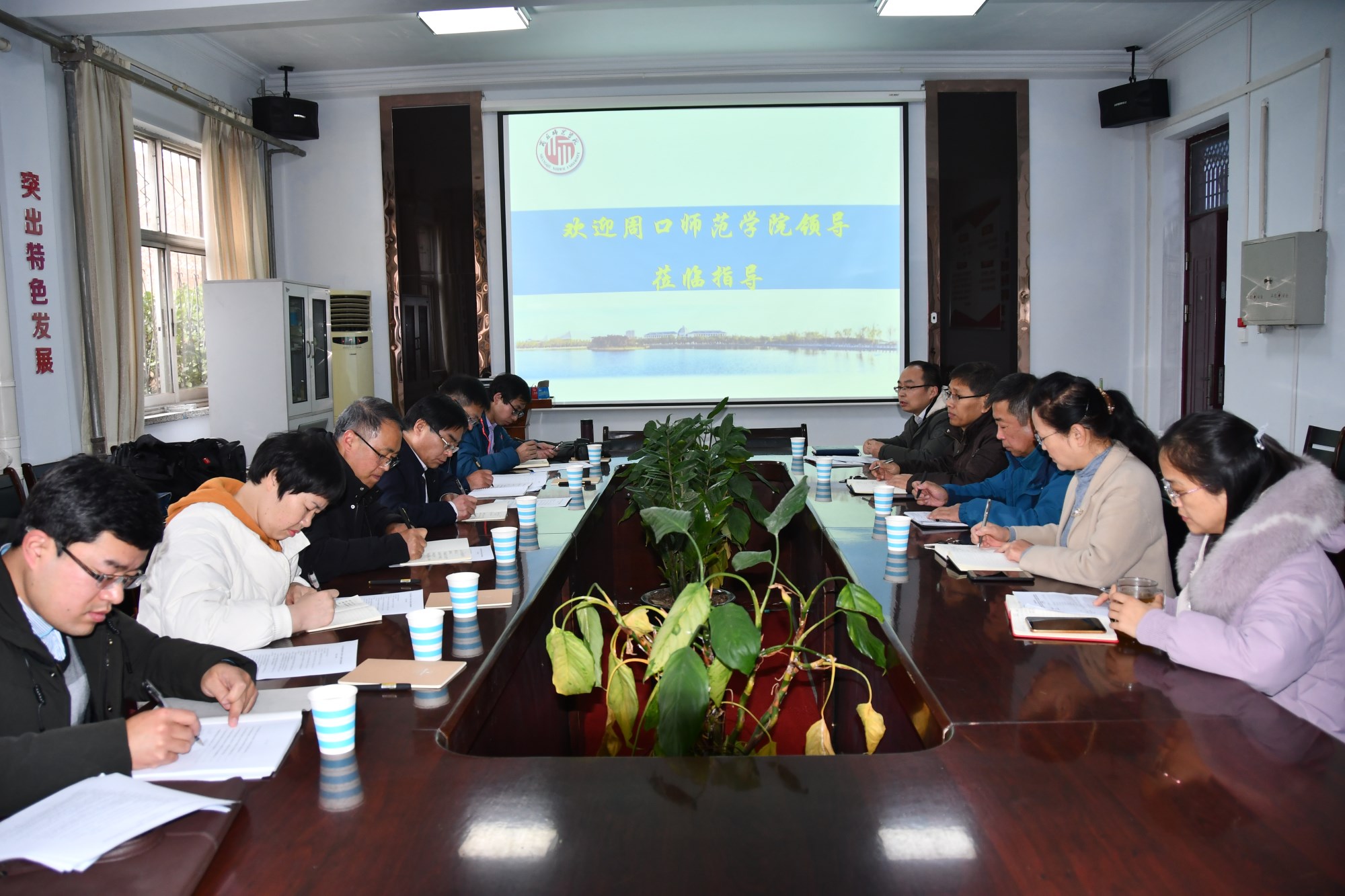 12月18日下午,周口师范学院米兰体育官方网站院长王子云一行六人来校考察本科教学审核评估工作。米兰米兰体育官方网站接待王子云一行,双方在米兰体育官方网站会议室举行座谈交流会,米兰体育官方网站全体班子成员参加座谈。
