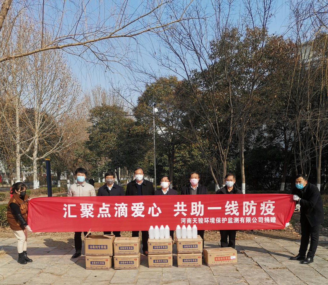 当前,全国上下奋力抗击新型冠状病毒。为助力学校新型冠状病毒疫情防控工作,2月12日上午,米兰米兰体育官方网站校企合作单位河南天骏环境保护监测有限公司于睢阳校区向米兰体育官方网站捐赠了500斤消毒用酒精,大力支持学校的疫情防控工作。米兰体育官方网站副校长徐茂田、宣传部部长李辉、校地合作处处长孙家付、后勤服务中心主任邱友良、河南天骏环境保护监测有限公司总经理母学征、市场部经理胡鑫共同参加了捐赠仪式。
