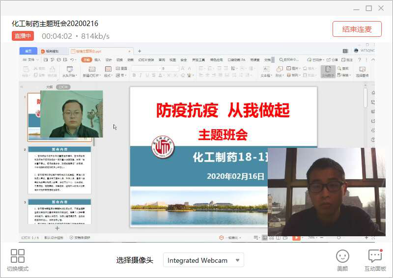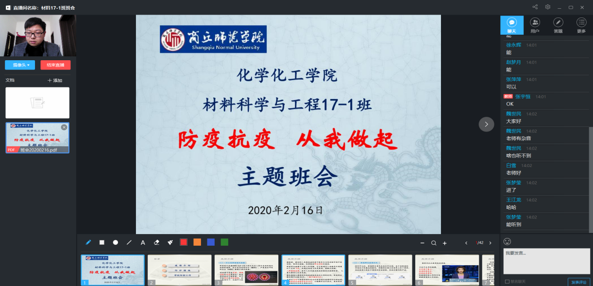 为增强同学们对新型冠状病毒的认识,提高警觉意识,约束自我行为,做好开学前的疫情防控准备工作。米兰体育官方网站各级各班于2020年2月16日下午召开了“抗疫防疫,从我做起”线上主题班会。