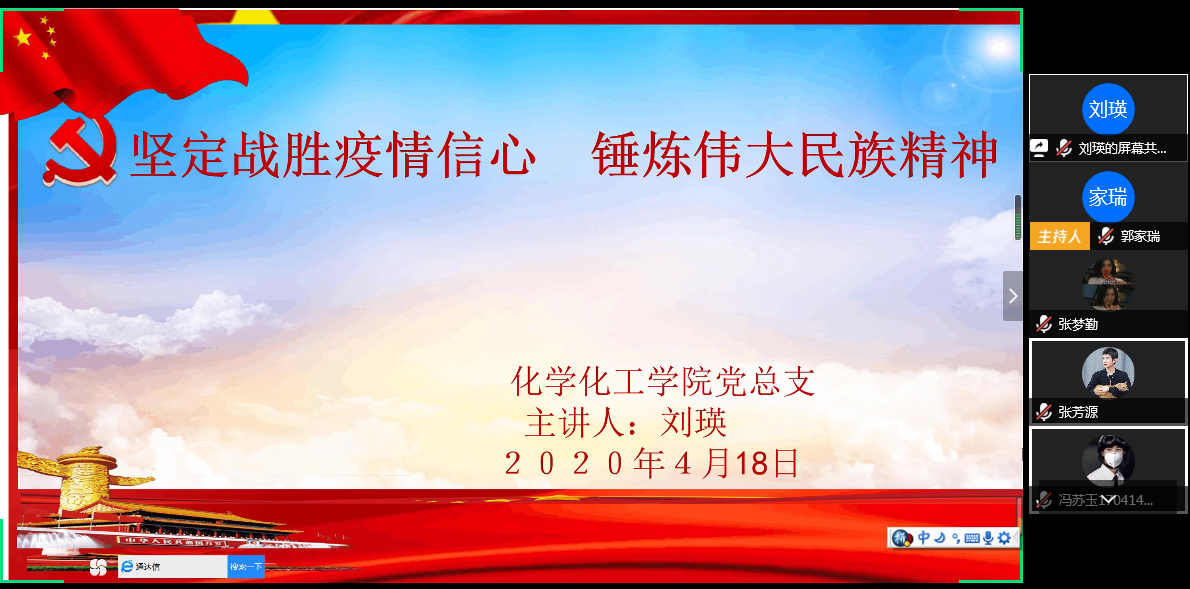 本次培训以线上集中培训为主,结合线下自学,通过线上专题党课培训、线上小组讨论、线下观红影、自学等方式进一步提高入党积极分子的政治理论素养,增强政治觉悟。在培训开班仪式上,党总支副书记刘瑛宣读了《米兰体育官方网站第46期入党积极分子培训计划》,强调培训内容以党的基本理论、路线、纲领等内容为重点,并紧密结合当前疫情防控形势进行。之后分别邀请学院党总支书记韩忠民、院长瞿鹏、党总支副书记刘瑛、学生第三党支部书记邵一方、学生第四党支部书记郭家瑞进入第46期党课“云课堂”为积极分子讲授专题党课,讲授内容既有对党章、对中国梦的解读,又有结合目前疫情防控形势对积极分子进行的爱国主义教育,既引导入党积极分子如何端正入党动机,又使积极分子清晰明确党员发展的方针和程序。线上专题党课讲授内容丰富,贴合培训实际,真正达到了培训的目的。