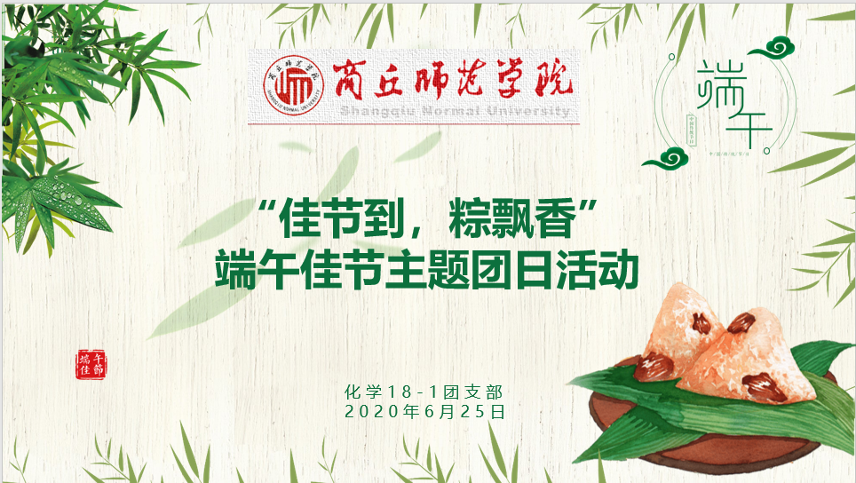活动前期,各班团支书号召同学们积极搜集与端午节相关的材料,为团日活动做好充分的准备。活动开始,各班团支书通过PPT讲述了端午节的由来,同学们一起聆听了楚国大夫屈原一心为国,宁死不屈的故事,让学生明白了端午节不只是粽子节、龙舟节,更是民族节、爱国节。同时还向同学们介绍了有关端午的“端阳”、“重五节”、“诗人节”、“龙日”等名词所蕴含的意义,让同学们对“端午节”有了更深入的了解。活动期间,同学们也和家人一起开展了很多活动,挂艾草,做香包、包粽子,互道端午安康,一家人其乐融融。活动最后,同学在线上进行了交流互动,表示一定会积极的传承和发扬中国的传统节日,让中国的传统文化代代相传。