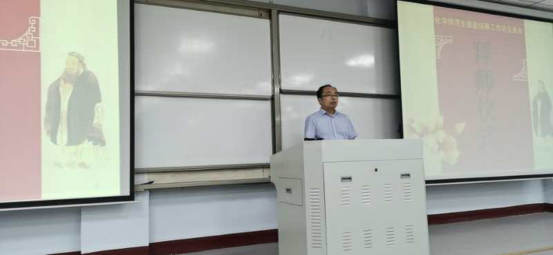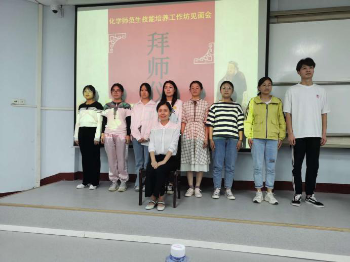 为进一步加快化学专业师范生专业成长步伐,着力打造一支师德高尚、业务精良的高素质教师队伍,9月25日下午,米兰体育官方网站在米兰睢阳校区1308教室举行化学专业“互联网+”师范生教学技能培养工作坊拜师仪式。米兰体育官方网站党总支书记韩忠民,米兰体育官方网站副院长孟团结,10位工作坊坊主,班主任张南老师及全体学员参加了仪式。会议由化学系主任韦秀华老师主持。