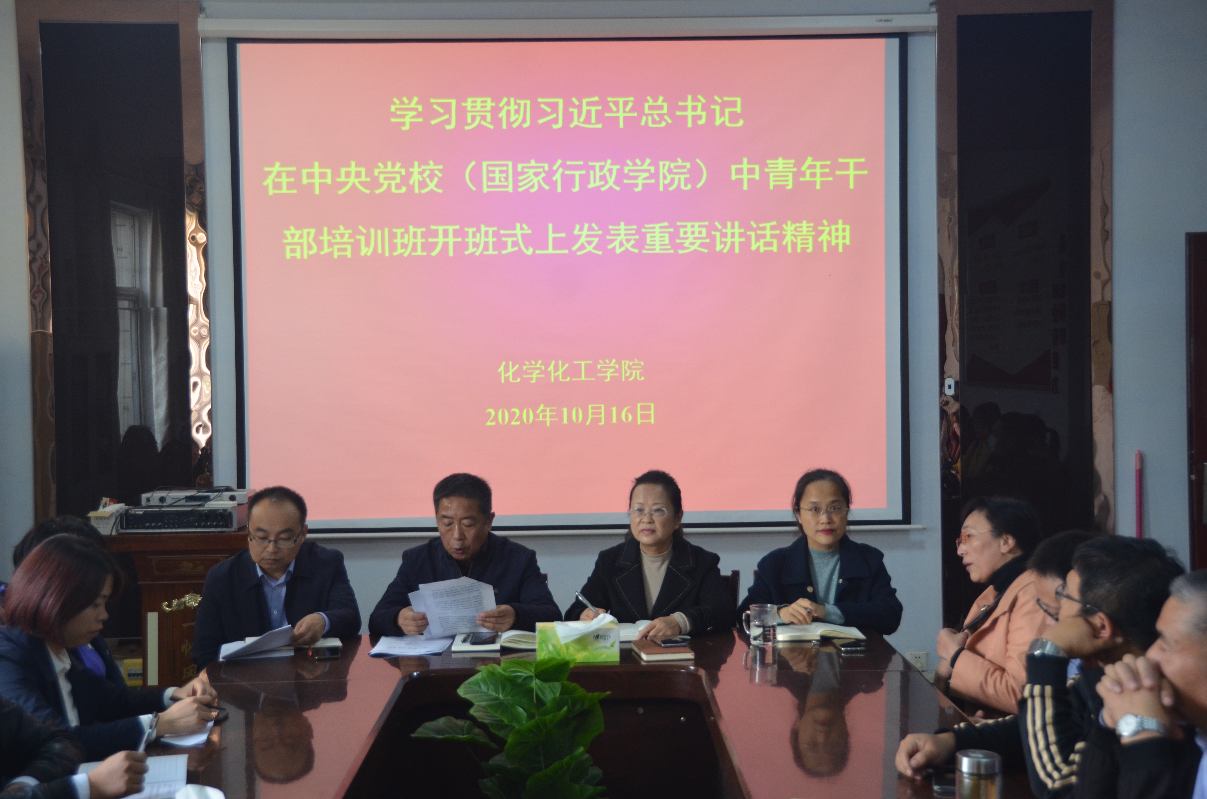 深入学习习近平新时代中国特色社会主义思想,提高米兰中青年教师解决实际问题的能力,2020年10月16日下午,米兰体育官方网站于睢阳校区7号楼会议室组织全体教职工学习“习近平在中央党校(国家行政学院)中青年干部培训班开班式上的重要讲话”精神。会议由党总支书记韩忠民主持。